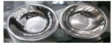 - Material inox, otel inoxidabil , partea de jos este din silicon, dimensiune 22cm si 26 cm, culoare argintiu cu fond negru, ambalare 50-60 piese, minimul de vanzare este de 100-120 piese, stocul contine 5700 de piese, pretul este de la 1.95 euro la 2.62 euro – in functie de dimensiune.