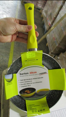 Tigai cu invelis de piatra. Lot de tigai cu invelis de piatra, tigaile au manere ergonomice, tigai de o foarte buna calitate. Tigaile au diametru de 20cm si 24cm. Pretul unei tigai cu diametrul de 20 cm este de 3.58 euro iar tigaile care au diametru de 24 cm, pretul este de 4.38 euro. Tigaile sunt neaderente. Intregul stoc contine 5376 de bucati adica 16 paleti. Atat tigaile cu diametrul de 20cm cat si tigaile cu diametrul de 24cm sunt 2688 de bucati fiecare.